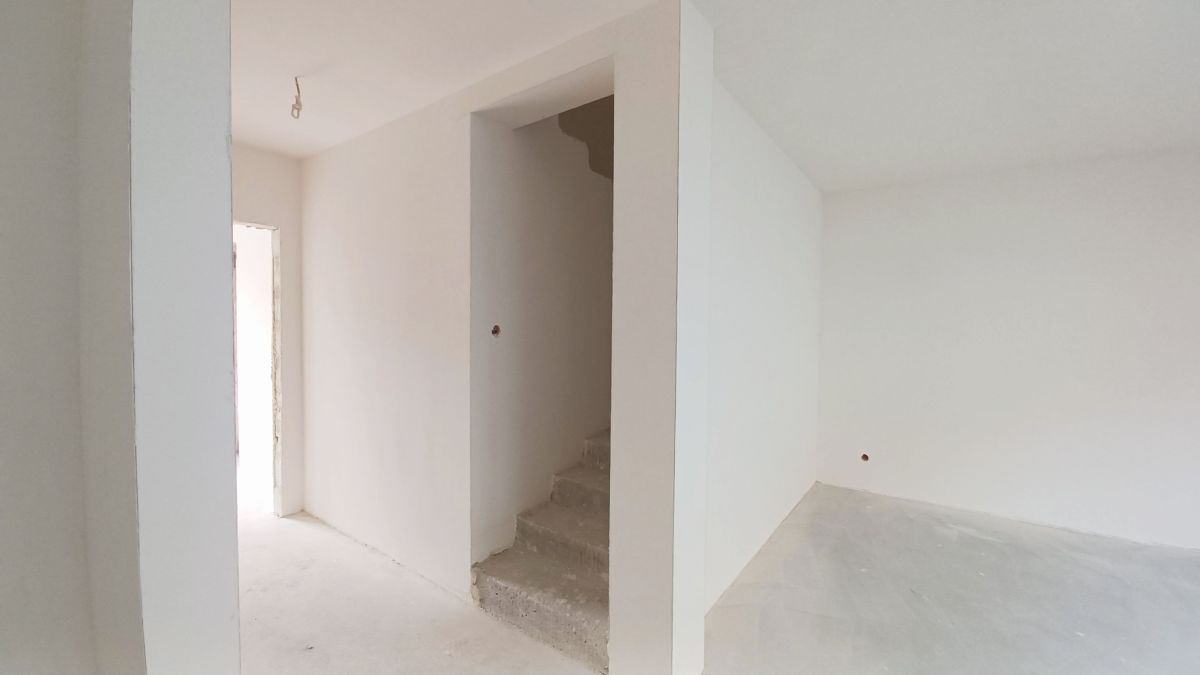 Prezentujemy segment w stanie deweloperskim o powierzchni 114,04 m², usytuowany w budynku dwurodzinnym z własną przynależną działką o powierzchni ok. 220 m². Konstrukcja budynku to solidny murowany (beton komórkowy), ocieplony styropianem o grubości 20 cm, z płaskim dachem krytym papą termozgrzewalną oraz estetycznymi tynkami strukturalnymi. Okna PVC,trzyszybowe, wyposażone w zewnętrzne rolety z napędem elektrycznym, granitowe parapety i przesuwne okno tarasowe zapewniają komfort i bezpieczeństwo.