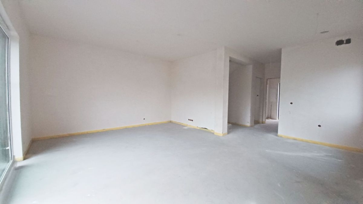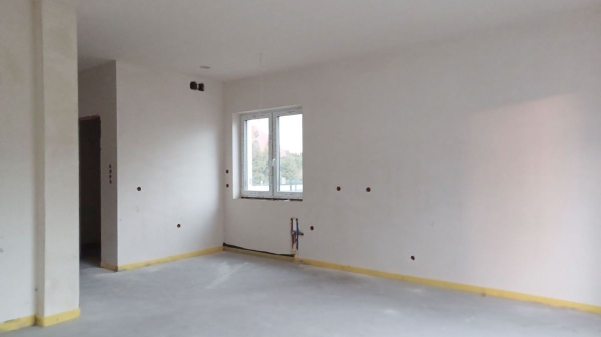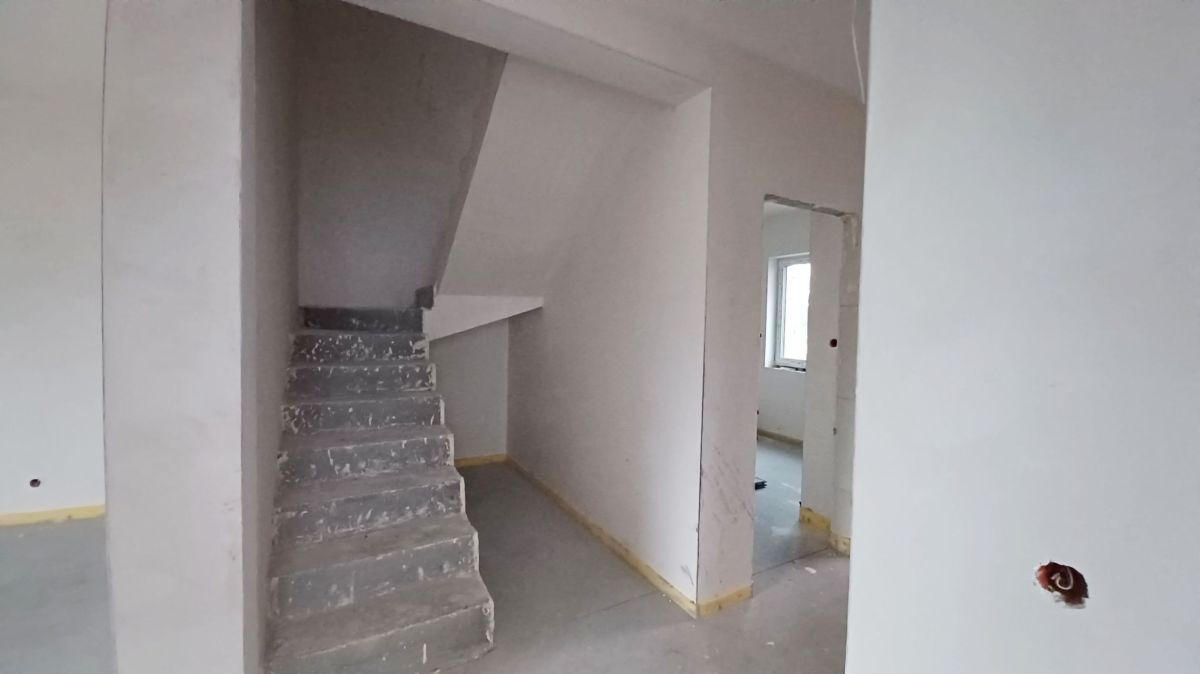 Stan wykończenia to tzw. deweloperski - tynki gipsowe maszynowe na ścianach i sufitach, betonowe posadzki, betonowe schody oraz stropy wykończone gipsowo-kartonową zabudową na poddaszu.