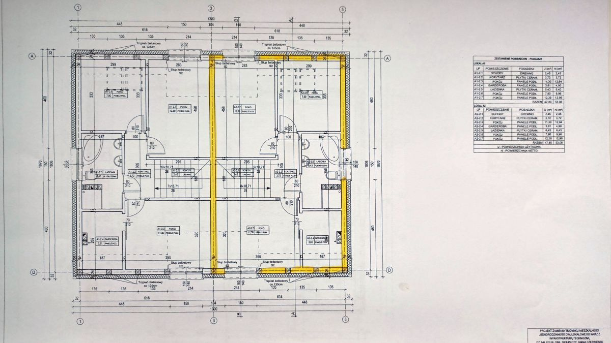 Na poddaszu o powierzchni 47,80 mkw (po podłodze 53,06 mkw) mieszczą się trzy funkcjonalne pokoje - sypialnia małżeńska z własną garderobą oraz dwa pokoje dla dzieci, przestronna łazienka i korytarz, zapewniające komfort i przestrzeń dla całej rodziny.