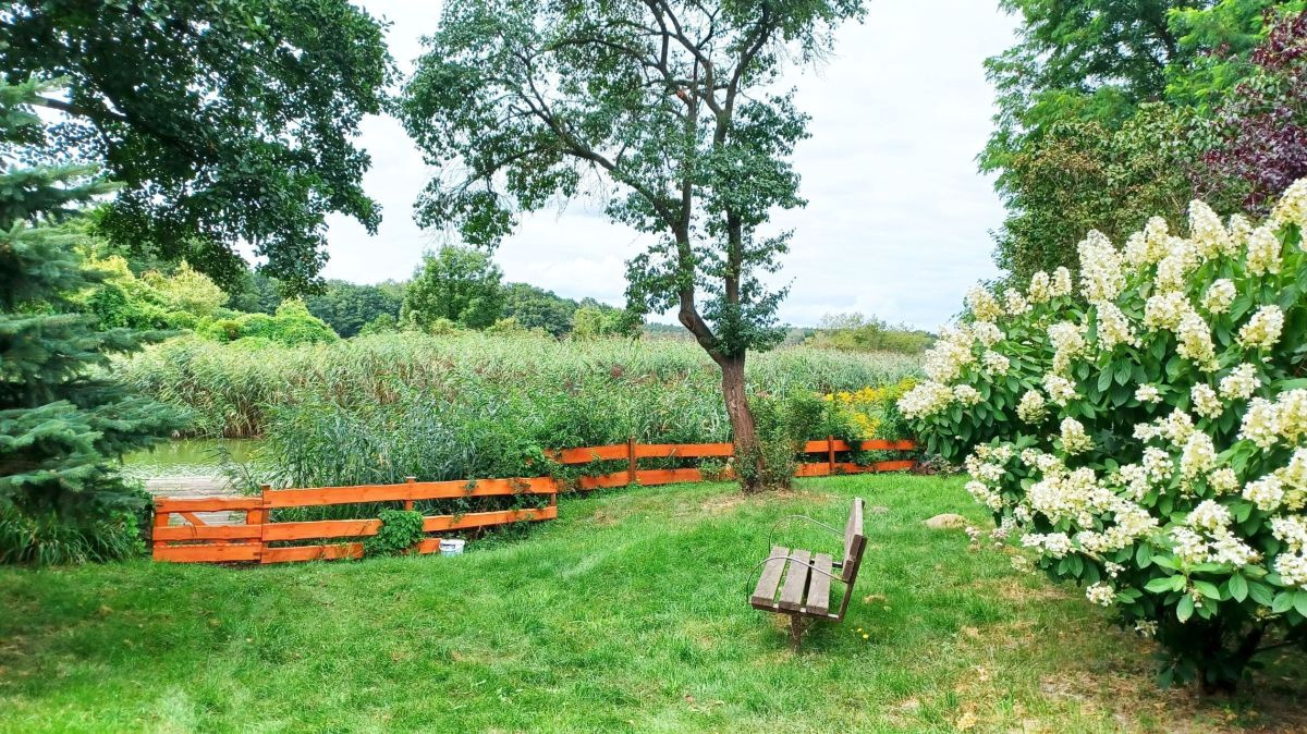 Na zewnątrz czeka na Ciebie piękna, duża działka, pełna drzew i krzewów, gdzie można odpocząć na romantycznej ławeczce wśród kwitnących hortensji, słuchając szumu trzciny i płynącej wody. To miejsce stworzone dla osób ceniących relaks, wyciszenie i kontakt z naturą - idealne do aktywnego wypoczynku, wędkowania czy wieczornych obserwacji gwiazd, które w tym miejscu są tak widoczne, jak nigdzie indziej.