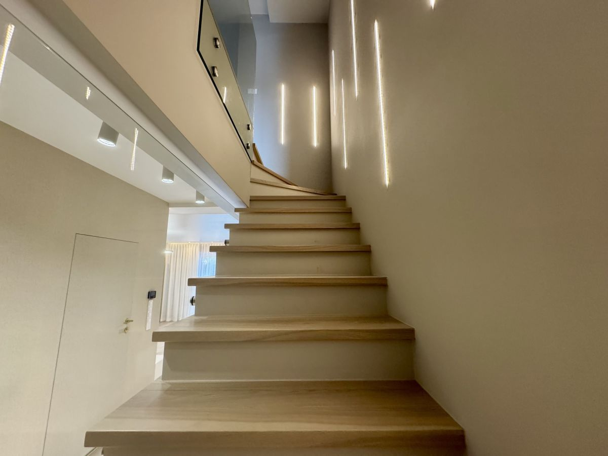 - Drewniane schody prowadzące na piętro,