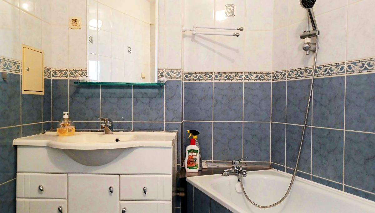 Wnętrze: ściany wygładzone i pomalowane na neutralne kolory, podłogi w pokoju i przedpokoju wyłożone estetycznymi panelami, a w kuchni i łazience - trwała terakota. Okna drewniane gwarantują doskonałą izolację akustyczną i termiczną. Przedpokój wyposażony został w zabudowaną szafę z drzwiami przesuwnymi i lustrem, co zwiększa funkcjonalność przestrzeni. Łazienka z wanną, wykończona elegancką glazurą, stanowi komfortowe miejsce do codziennej higieny.